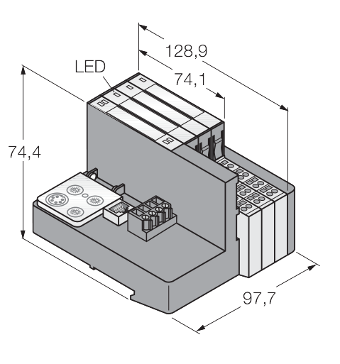 128,9 mm x 97,7 mm x 74,4 mm